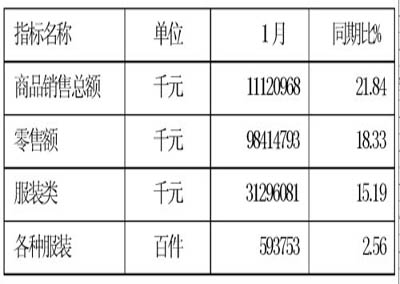 根據中華全國商業信息中心的統計,2012年1月份,全國重點大型零售企業服裝類零售額同比增長15.19%,相比去年同期大幅度放緩43.02%,與春節同在1月份的2009同期相比,放緩22.5%。