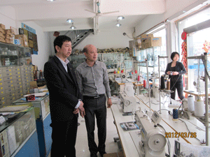 第二站來到了廣東商會秘書處,鴻昌針車行負責人陳國耀、廣州豐瑋縫紉設備有限公司總經理李宗潤、江南兄弟針車有限公司總經理陳耀南等廣州行家在商會秘書處與楊曉京秘書長舉行了座談。座談的主要內容圍繞著目前經濟環境影響下經銷商所受的影響,了解國有品牌產品的銷售情況以及年后市場行情。座談會結束后,楊秘書長一行還來到了恒業機電針車城,深入到一線市場了解行業情況。