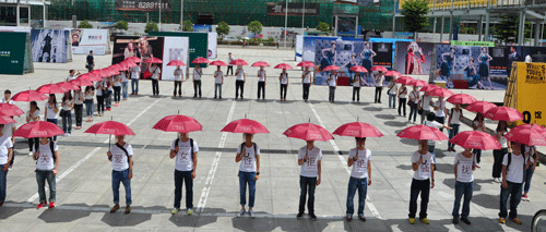 從鏡頭里可以看到很多準備入場的觀眾拿著手機給“雨傘陣”拍照,這時,我的iphone在口袋里震動——同事發簡訊讓我趕緊從橋上下去。我迅速跑下去,原來,觀眾們拍的不是雨傘,而是雨傘下面青春陽光的男生女生T恤上“關愛女性,拒絕騷擾”的宣傳標語,騷擾在大城市比較突出,辦公室,地鐵,公交等等都會有異性騷擾的例子,這次法瑞姿女裝在公開場合宣揚拒絕騷擾的關愛女性的行為藝術充分表明了一個企業不僅僅要做好自己的產品,更要體現自身的社會責任感,希望越來越多的企業象LA PRAZL 法瑞姿一樣肩負起對女性的尊重和對社會的責任,讓我們的社會變得更美好。