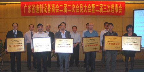 12月2日,經過為期5個月的宣傳、申報、核實、評審等嚴格評選程序,廣東省縫制設備行業30強經銷商評選結果在商會二屆二次會員大會上揭曉。東莞祥興針車有限公司等三十家公司獲此殊榮。中國縫制機械協會理事長田民裕,副理事長、商貿委主任胡淼海等為獲獎單位頒發牌匾。