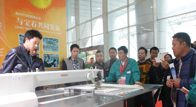 據悉,寶石是本次展會展位面積最大、實力最強、機型最全、服務最優、客流量最大的參展商。公司最先進的平包繃、特種機、繡花機齊聚展會,為參觀者奉獻上了一場縫制盛宴。寶石智能節能一體化工業縫紉機具有自動剪線、一鍵設置停針位、自動倒縫、自動抬壓腳等優點功能,迅速跳動的機針,美觀清晰的線跡,高度自動化的操作吸引了大量參觀者的眼球。