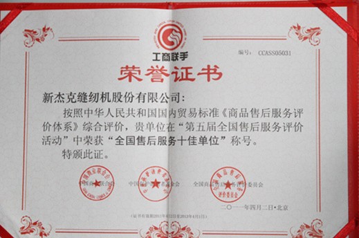 4月2日,備受關注的“第五屆全國售后服務評價活動”評選結果在北京釣魚臺國賓館隆重揭曉。憑借高效快捷的服務能力和廣布全國的服務網(wǎng)點,新杰克縫紉機股份有限公司光榮當選為“全國售后服務十佳單位”,因此殊榮是每一行業(yè)評選一家,所以新杰克也是縫制設備行業(yè)唯一獲選單位。同獲此榮譽的還有蘇寧、五糧液、格力等各行業(yè)的知名企業(yè)。新杰克技術服務中心經(jīng)理鮑舒受邀上臺接受了中國商業(yè)聯(lián)合會會張志剛頒發(fā)的榮譽證書。