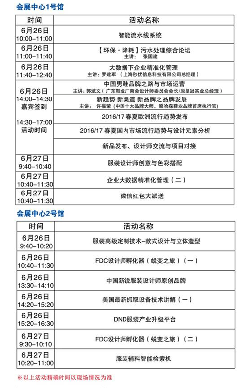 從組委會獲得信息,為了滿足展商和觀眾的各類需求,組委會籌備了眾多的精彩活動,將于展期“閃亮登場”。本次會期活動類型之多、內容覆蓋面之廣“史無前例”,涵蓋了行業新趨勢、新技術及新的生產模式的講解論壇,環保綠色降耗的生產思路引領,2016/17年流行趨勢的介紹,當下時興的互聯網+等電子商務大數據管理等,可為亮點多多,精彩不斷,“你”不容錯過!