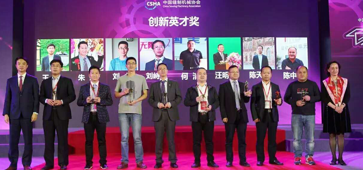 中國縫制機械協會理事長何燁、副理事長林建龍,工信部消費品工業司司長高延敏、國家發改委產業協調司調研員李平,以及來自中國輕工業聯合會、中國服裝協會、中國產業用紡織品行業協會、中國家具協會、中國皮革協會、中國工業設計協會的領導和嘉賓分別宣讀了獲獎名單并頒發獎杯,美機不負眾望,摘下“創新引領獎”、“創新英才獎”兩項大獎。