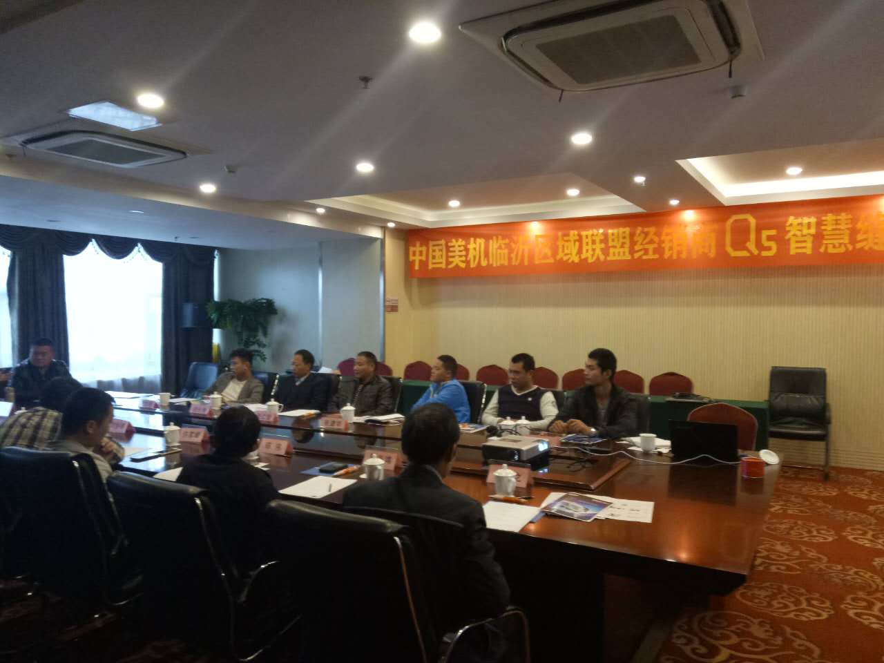 美機國內營銷總監王桂榮、以恩在公司為首的十幾家聯盟經銷商伙伴以及美機公司部分營銷人員26日齊聚臨沂華美達大酒店,共同見證Q5智慧縫紉機臨沂地區榮耀首發這一歷史時刻。