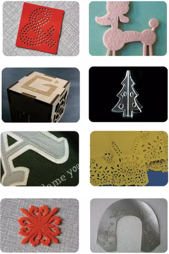 激光切割機出來的布料自動收邊不散邊,不變形,不會發硬,尺寸一致且精確;電腦設計圖形,可切割任意形狀和各種大小的圖案。