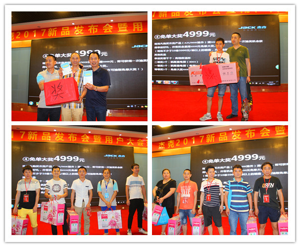 本年度的杰克用戶大會,杰克公司為上市感恩新老用戶,設置了多項購機優惠政策:購機送紅包,現場購機優惠定金翻五倍,更有4999元免單大獎等,吸引了大批制衣廠家踴躍在現場下單購機。活動最后進行了獎品豐富的抽獎環節。杰克廣州江南團隊的負責人陳耀南總經理抽出了本次活動免單大獎。陳總表示,本次活動通過整個團隊的不懈努力,取得了圓滿成功,獲得良好的宣傳推廣效果,為杰克在廣州的市場拓展打下了良好的基礎。(江南針車公司特別鳴謝江蘇凱斯曼公司對大會部分獎品的贊助,共送出凱斯曼KSM-888伺服電剪1臺、凱斯曼KSM-8003電剪2臺)。