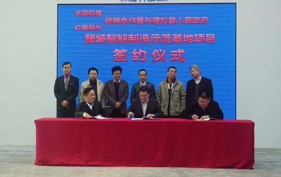 2016年底,安徽省宿松縣政府與安徽紅愛實業股份有限公司一行領導前往長園和鷹上海總部,就共同打造紅愛國家級服裝智能制造示范基地進行考察調研,這一項目預計投資4億人民幣,對紅愛公司實現從原輔料管理、智能裁剪系統、智能吊掛、智能倉儲的系統化信息化改造。