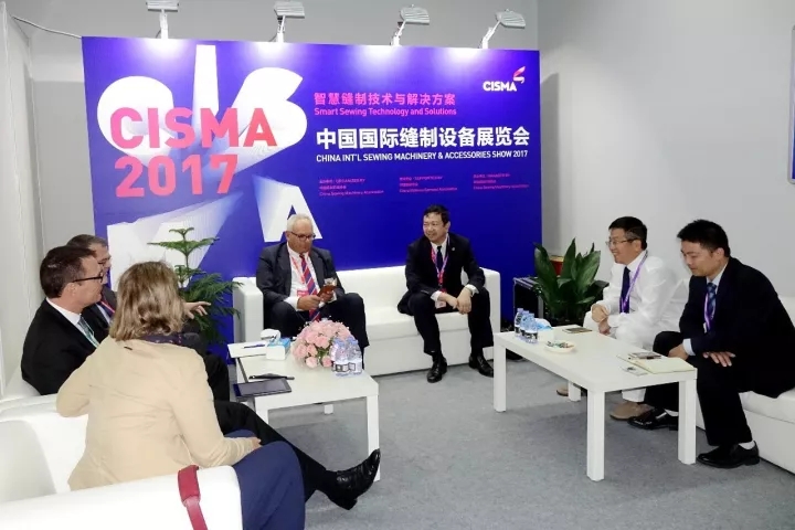 當天,VDMA會長Dietrich Eickhoff和執行董事Elgar Straub、市場總監Veronica März到訪,首先就CISMA2017的成功舉辦和展會盛況表示祝賀,并通報了明年亞特蘭大Texprocess展會的籌備情況。雙方就國際縫制設備展會的未來進行了探討。