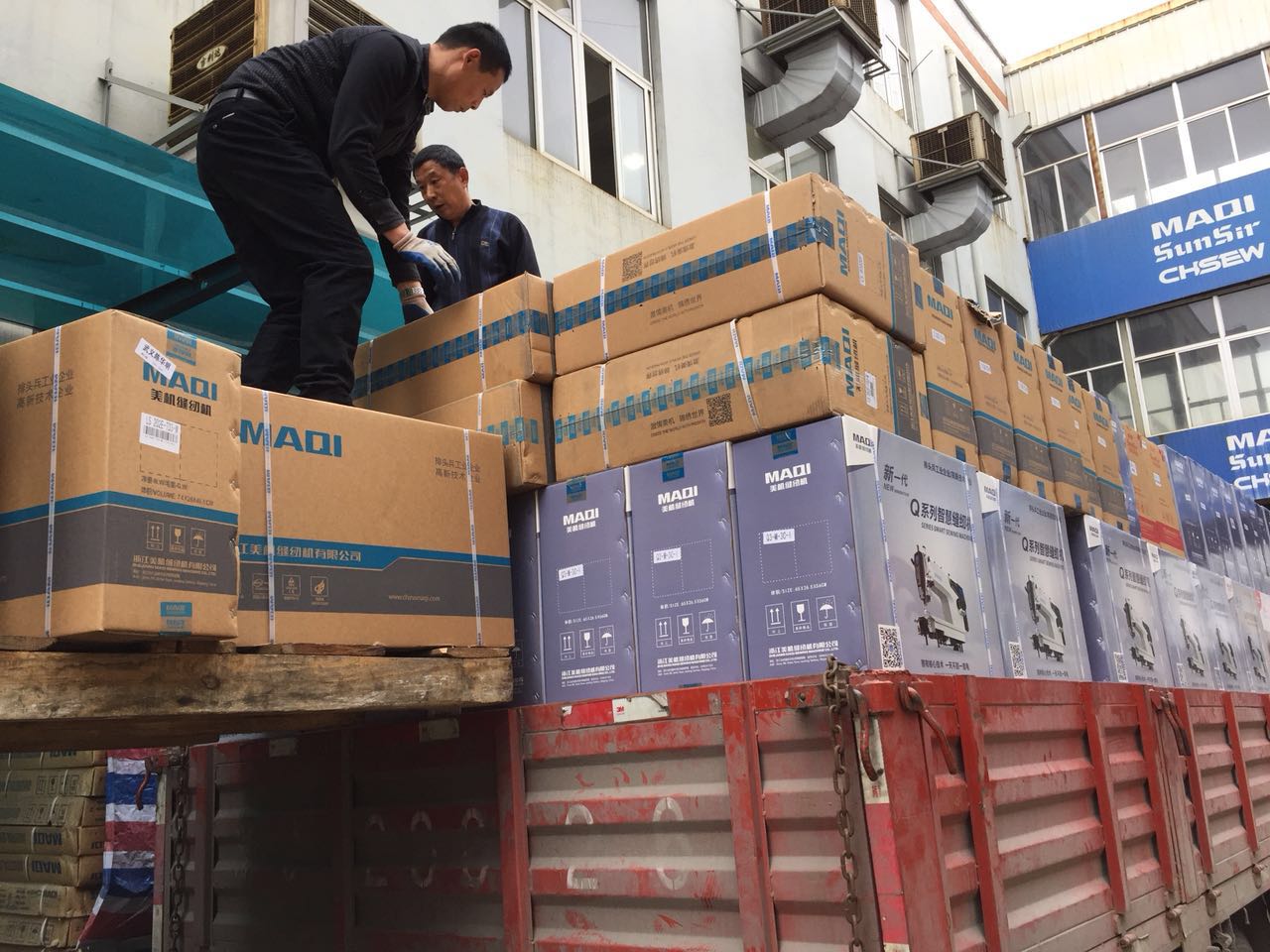 每天上午,陳君組織人員將各地要發的貨物按區域及裝車的次序整理好、配置好,從中午開始,一輛輛卡車和貨車便陸續駛進裝貨區,陳君又安排人員將一輛輛車裝滿。在裝貨區,叉車來回奔忙,裝貨人員揮汗如雨,奮力裝車,陳君一邊指揮裝車,一邊幫忙裝貨,縫紉機產品體積大,重量大,每天都要裝十幾輛車的貨,三天下來,陳君和她的小伙伴們相當于搬運了一座小山。