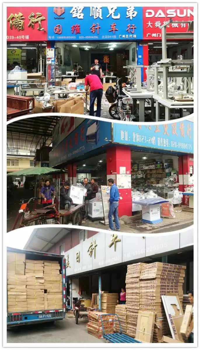 記者走訪期間看到,天雄針車城目前正處于旺季的開端,四處是一片繁忙的景象。各個針車行都在忙著銷售洽談、裝機、打包、裝貨。很多針車行加班加點,從早上一直忙到深夜。一堆堆打包好的貨物擺放在各個商鋪門口,等待出貨。由于市容管制,原來搬貨的三輪車少了很多,很多商家只能使用貨車。這給出貨帶來了很大的挑戰(zhàn),有些針車行甚至出動了私家車來運貨。由于出貨量太大,而人手有限,一些針車行的老板親自加入到裝機、搬貨行列。