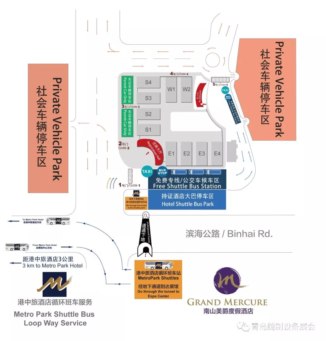 青島國際博覽中心公交線路眾多,展館四通八達,展館外圍設(shè)立兩處停車場。