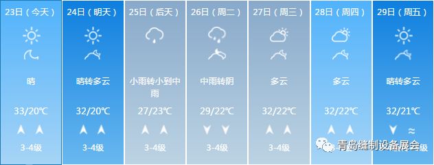 從現(xiàn)在(6月25日11:00,青島·即墨)的天氣預(yù)報(bào)來看,28-30日開展期間艷陽高照大晴天,展前3天陰雨天氣讓即墨地區(qū)溫度略有降低,正是逛展好時(shí)間,青島海濱城市,注意早晚氣溫變化。
