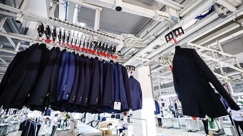 全吊掛系統(tǒng)提高產(chǎn)能20%,讓布料“腳不沾地”變成衣