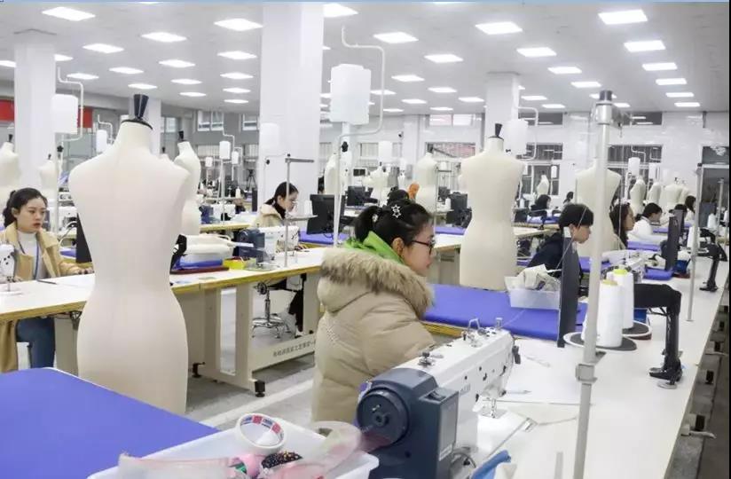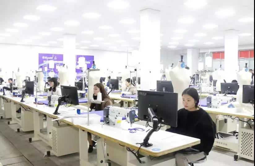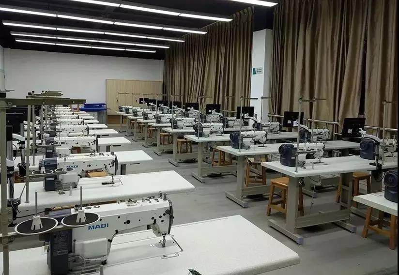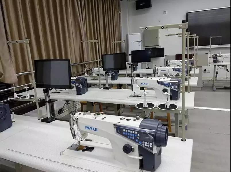 某職業院校服裝智能工藝室里的美機智慧平縫機