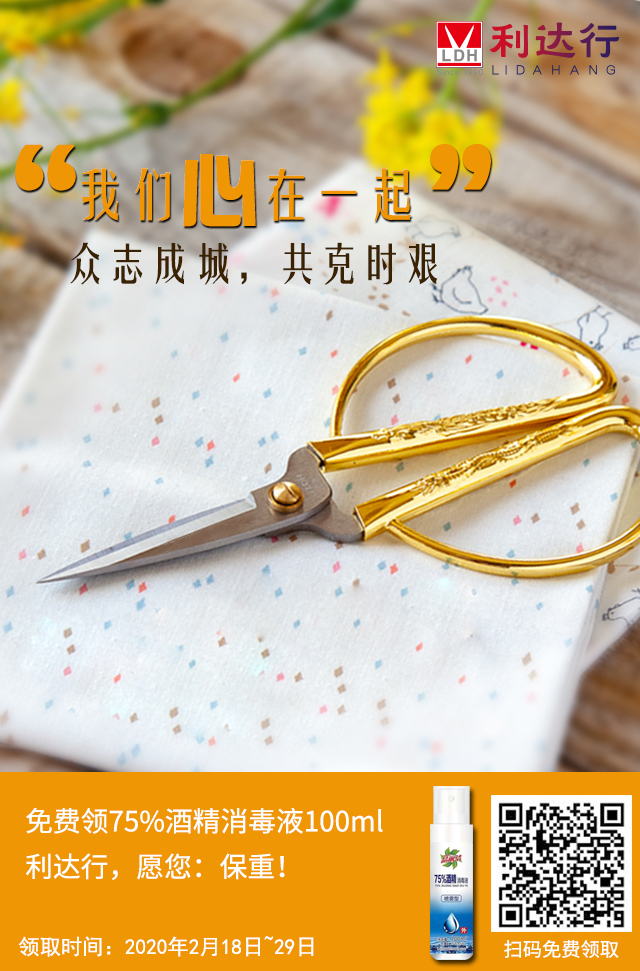 利達行剪刀公司特別推出免費領酒精消毒液活動,以實際行動助力大家對抗疫情,與大家共克時艱。