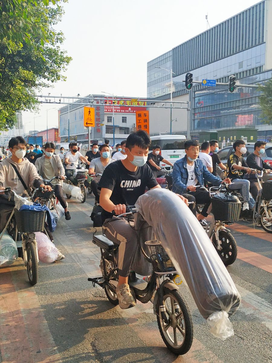 在走訪中大布匹市場與十三行服裝市場看到,企業復工情況比較良好,基本能達到95%以上,而且店鋪的員工到位情況也比較理想,在街道上可以看到裝載布匹和服飾的拉車穿梭往來,市場環境相對針車市場整體上要好。