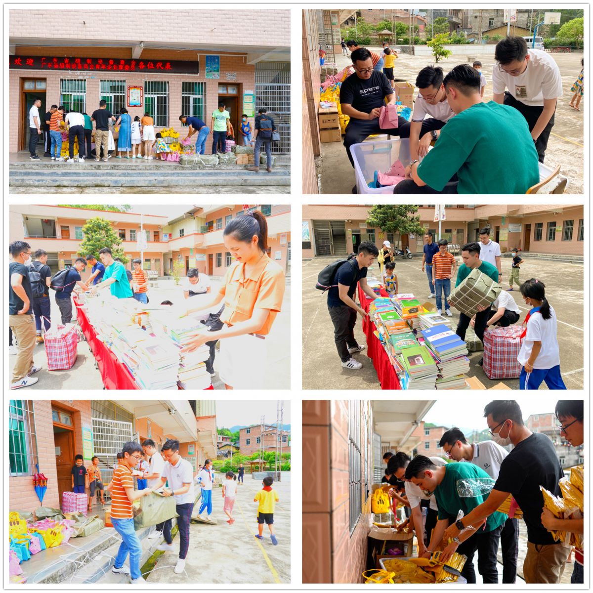 當天凌晨,商會一行開始將捐贈物資裝車,滿載著商會成員愛心的物資分別從廣州和東莞、中山三地出發,經過四個小時的長途跋涉,在中午時分來到了位于粵西地區的信宜市思賀鎮朋候村廣東省縫制設備商會希望小學。到了希望小學后,各位青年企業家積極搬運捐贈物資并分裝禮品,認真準備下午和孩子們的“見面禮”,為下午舉行的捐贈儀式做好準備工作。