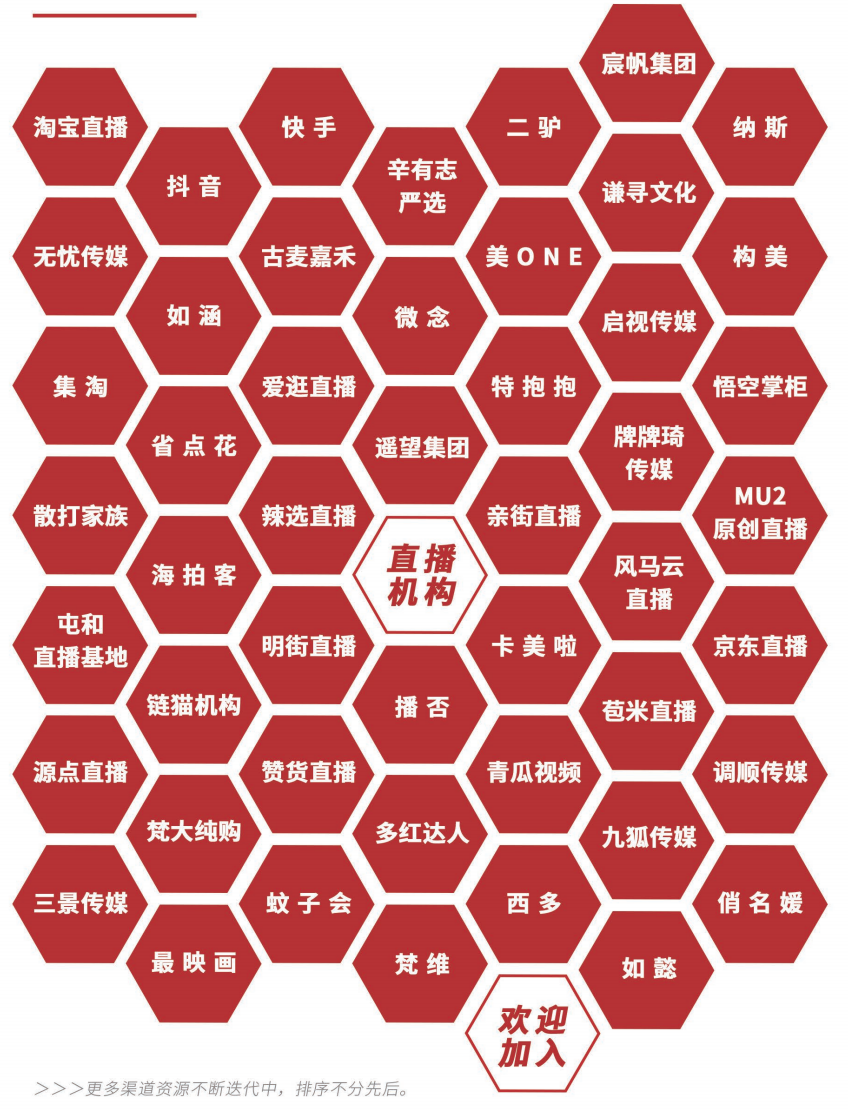 新零售聯盟擁有淘寶直播、抖音、快手、謙尋文化、如涵、辛有志嚴選、宸帆集團等直播機構,以及云集、拼多多、肅寧易購、唯品會、聚美優品、小紅書、網易嚴選等電商品臺及社交電商平臺資源,幫助供應鏈企業拓展新的營銷渠道,同時幫助銷售平臺找到好的爆品。