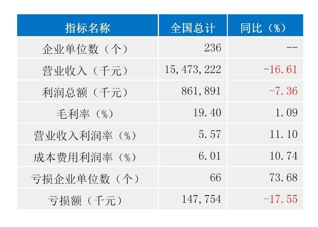 據(jù)統(tǒng)計局?jǐn)?shù)據(jù)顯示:1-8月,行業(yè)236家規(guī)模以上生產(chǎn)企業(yè)累計營業(yè)收入154.73億元,同比下降16.61%,降幅較7月收窄0.57個百分點(diǎn),較一季度收窄9.87個百分點(diǎn);實(shí)現(xiàn)利潤總額8.62億元,同比下降7.36%,降幅較7月收窄9.07個百分點(diǎn),較一季度收窄55.87個百分點(diǎn);毛利率19.40%,同比增長1.09%;營業(yè)收入利潤率5.57%,同比增長11.10%。8月當(dāng)月,規(guī)上企業(yè)營業(yè)收入環(huán)比下降5.24%,利潤總額環(huán)比增長1.68%。