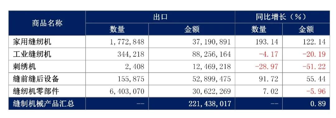 2020年8月縫制機(jī)械產(chǎn)品出口情況