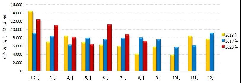 據(jù)海關(guān)最新數(shù)據(jù)顯示, 1-8月我國縫制機(jī)械產(chǎn)品累計進(jìn)口額6.46億美元,同比增長17.57%,增幅較7月收窄4.86個百分點(diǎn)。其中工業(yè)縫紉機(jī)進(jìn)口量2.50萬臺,進(jìn)口額4599萬美元,同比分別下降23.706%和40.18%。