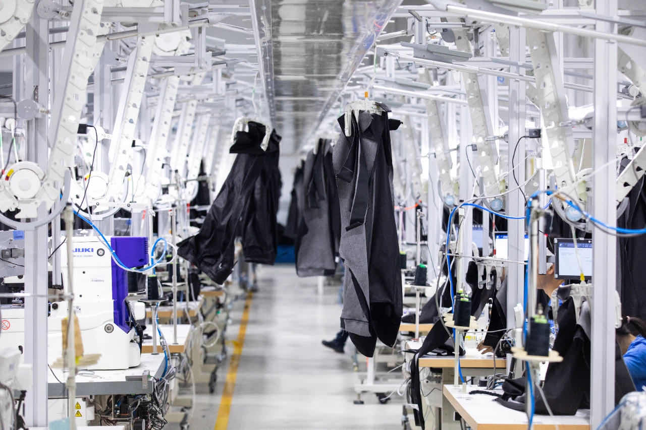 衣拿(INA)作為初始參與者,自犀牛智造2018年一期初建時就參與其中。整套生產(chǎn)所需的數(shù)據(jù)采集、布局定點,基本圍繞吊掛展開。整合現(xiàn)有技術(shù)和前沿理念進行對接,逐步形成了涵蓋生產(chǎn)管理、數(shù)據(jù)采集、實時調(diào)整、后整物流、銷售配送等全產(chǎn)業(yè)鏈條的智慧吊掛系統(tǒng)。犀牛制造工廠首創(chuàng)“棋盤式吊掛”,可將吊掛衣架自動分配至相對空閑的工位,解決吊掛單向流轉(zhuǎn)、容易堵塞的問題。