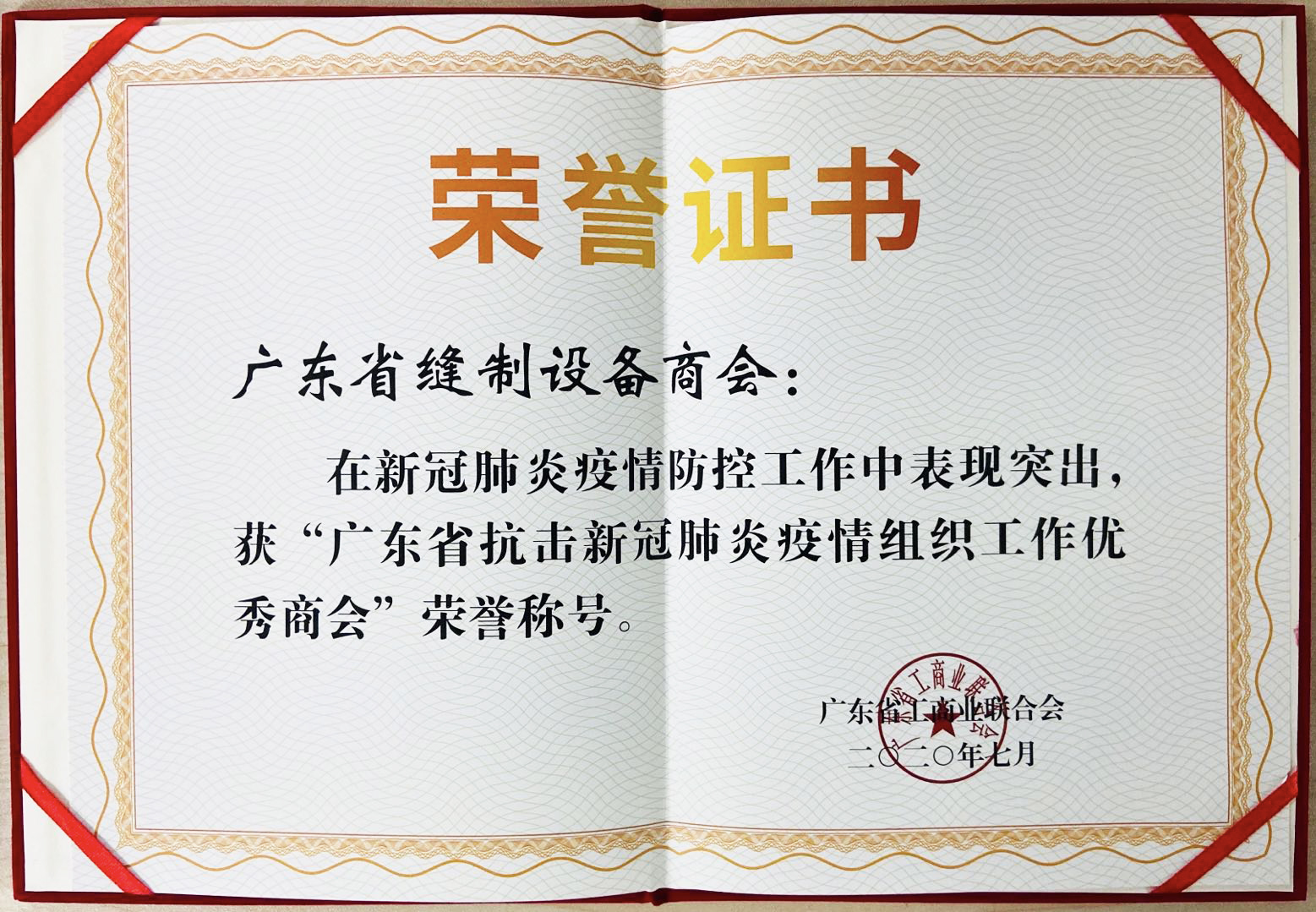 2015年商會被廣東省民政廳評估為廣東省5A級社會組織(社會組織等級評估的最高等級);2016年,商會被廣東省工商業聯合會(總商會)認定為“2016年優秀商會示范點”,商會被廣東省社會組織總會評選為“2016年度優秀社會組織”,商會秘書處被中國縫制機械協會評選為中國縫制機械行業“十二五”創新團隊;2018年,商會被廣東省社會組織總會評選為“2017年度十佳社會組織”;2020年,商會被廣東省工商聯(總商會)評為廣東省抗擊新冠肺炎疫情組織工作優秀商會。