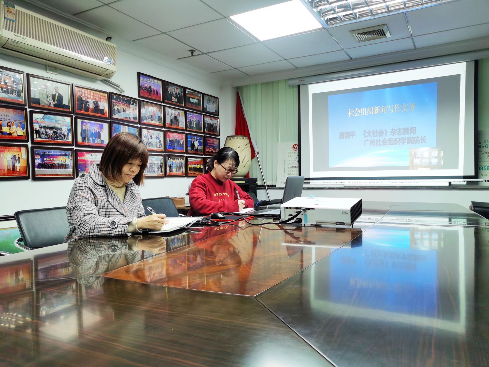 《大社會》雜志顧問、廣州社會組織學院院長唐國平授課。唐國平院長作“社會組織新聞寫作實務”主題分享,圍繞稿件寫作前期準備、如何寫好稿件、寫作用詞與規范和2020年《大社會》雜志稿件綜述,講解了社會組織新聞寫作要點,并用今年刊發在《大社會》雜志的文章作出了生動的案例分析。為促進社會組織輿論宣傳工作,提高社會組織宣傳人員的寫作能力提供了學習借鑒和有益參考。