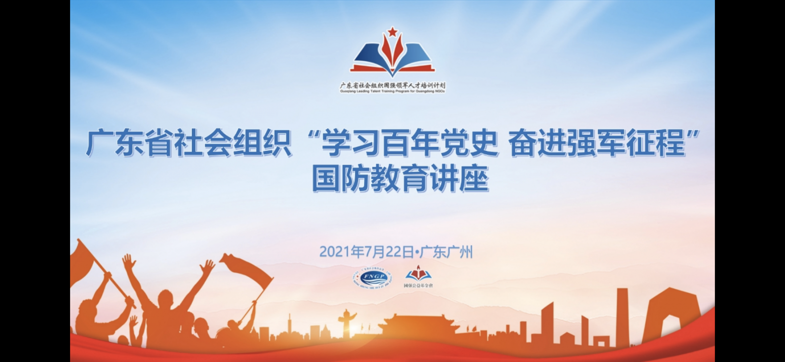 為慶祝中國人民解放軍建軍94周年,7月22日,廣東省社會組織總會與廣東省國強公益基金會聯合舉辦“學習百年黨史 奮進強軍征程”國防教育線上講座。講座由廣州市委原常委、廣州警備區原政治委員、廣州市人大原常委、廣州市國防教育講師團團長王成主講,廣東省社會組織總會常務副會長兼秘書長郭潔瑩主持,總會秘書處全體人員現場學習。商會秘書處黃笑妍、譚海萱參加了此次專題線上學習。