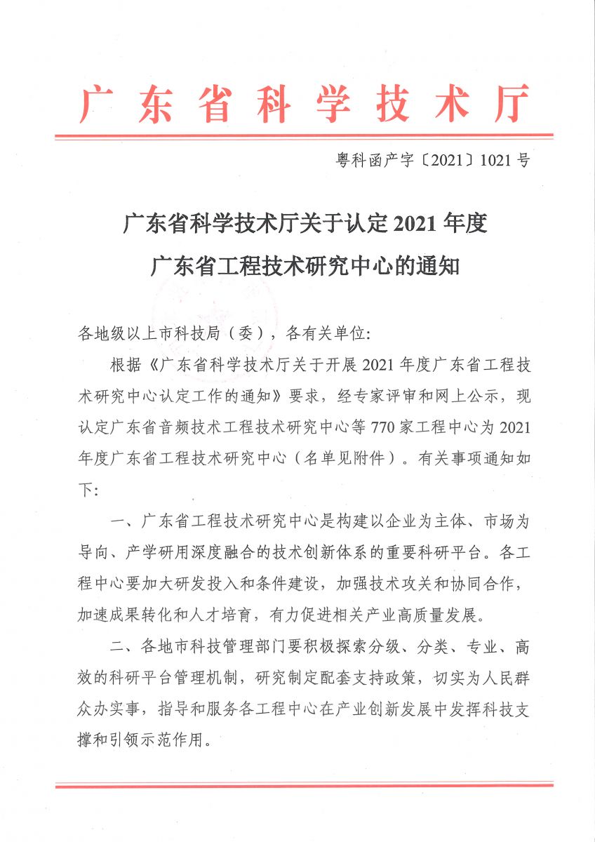 2021年8月20日,經廣東省科學技術廳認定通過,“廣東省智能縫制設備工程技術研究中心”在深圳市雅諾科技股份有限公司正式設立。