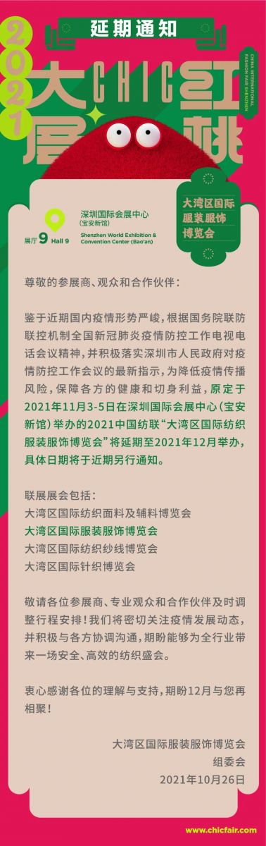 > 重要通知 | 2021中國紡聯大灣區紡博會延期通知