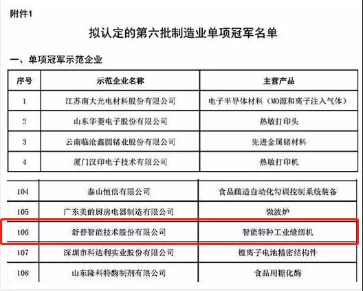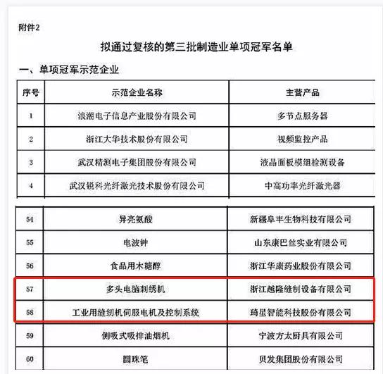 近日,工業和信息化部發布《關于制造業單項冠軍第六批遴選和第三批通過復核企業名單的公示》,中國縫制機械行業再傳捷報:舒普智能技術股份有限公司入選制造業單項冠軍擬認定名單,琦星智能科技股份有限公司、浙江越隆縫制設備有限公司擬通過第三批復核。