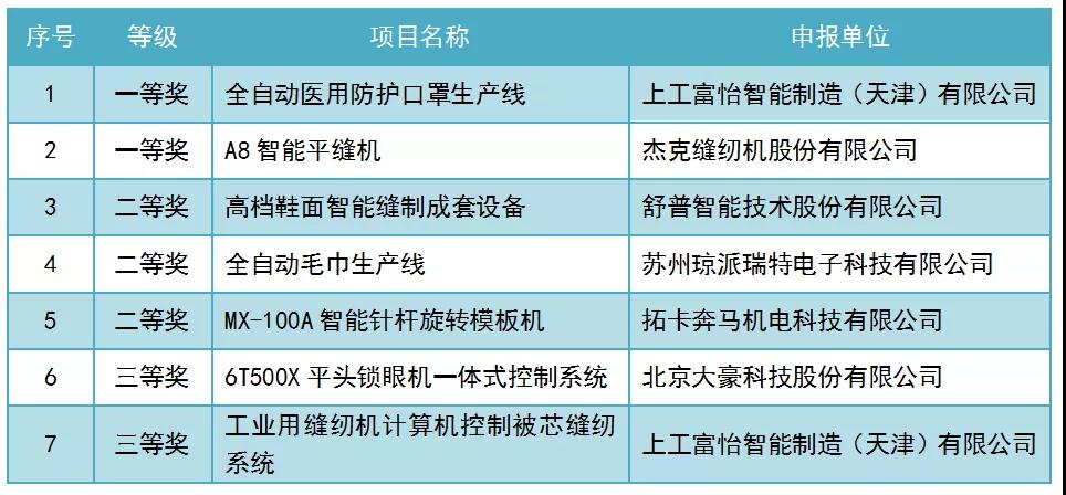 近日,中國輕工業聯合會公示2021年度中國輕工業聯合會科學技術獎獲獎項目,其中由中國縫制機械協會推薦的7個項目榮獲科學技術獎,名單如下: