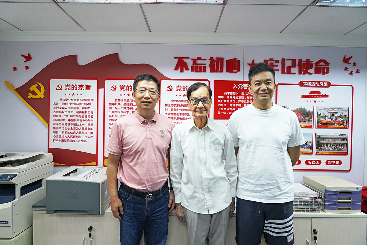陳國耀先生今年已有九十歲高齡,是廣州知名的縫制設備經銷商,從事縫制設備行業七十余年,行業經驗豐富,是業內德高望重的老行家,深受同行晚輩的愛戴和尊敬。商會成立16年以來,陳國耀先生歷任商會二、三、四屆監事,積極參與商會的各項重要活動,一直關注商會和行業,關心秘書處,對商會的發展、秘書處的成長提出許多寶貴的建議。退任后,依然心系商會和行業健康發展,多次隨同商會走訪行業企業,與企業交流行業發展;親臨商會秘書處指導工作,對年輕一輩提出期望及期許。