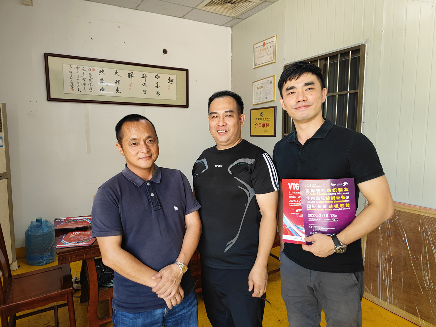 7月12-13日,商會(huì)會(huì)員部梁啟明主任、陳圳亮一行走訪了廣東肇慶地區(qū)的會(huì)員企業(yè),深入了解當(dāng)?shù)仄髽I(yè)今年上半年的生產(chǎn)和營銷情況,共同交流探討行業(yè)趨勢。同時(shí)向當(dāng)?shù)仄髽I(yè)介紹商會(huì)聯(lián)合主辦的2023大灣區(qū)國際智能紡織制衣工業(yè)設(shè)備展暨華南國際縫制設(shè)備展的相關(guān)情況。