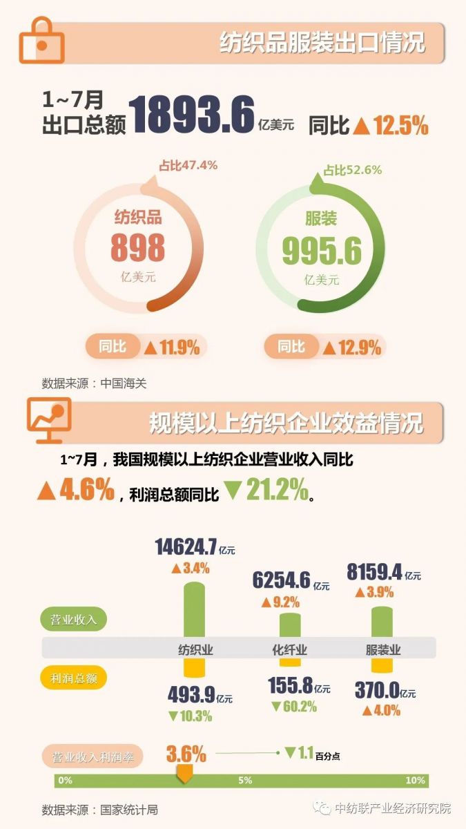 > “數(shù)”說(shuō)紡織:2022年1~7月紡織品服裝出口總額同比增長(zhǎng)12.5%