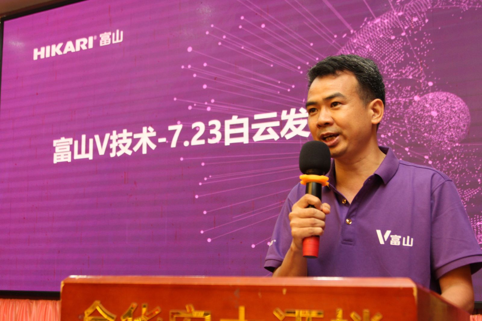7月23日,富山V技術白云發布會在廣州盛大舉行。上海富山精密科技有限公司董事長吳良杰、銷售總監劉紅啟、大區經理顧駿、廣州豐帆公司總經理楊帆、廣州飛耀針車行姜總和胡總,以及周邊制衣企業負責人等共300多人出席了本次發布會。
