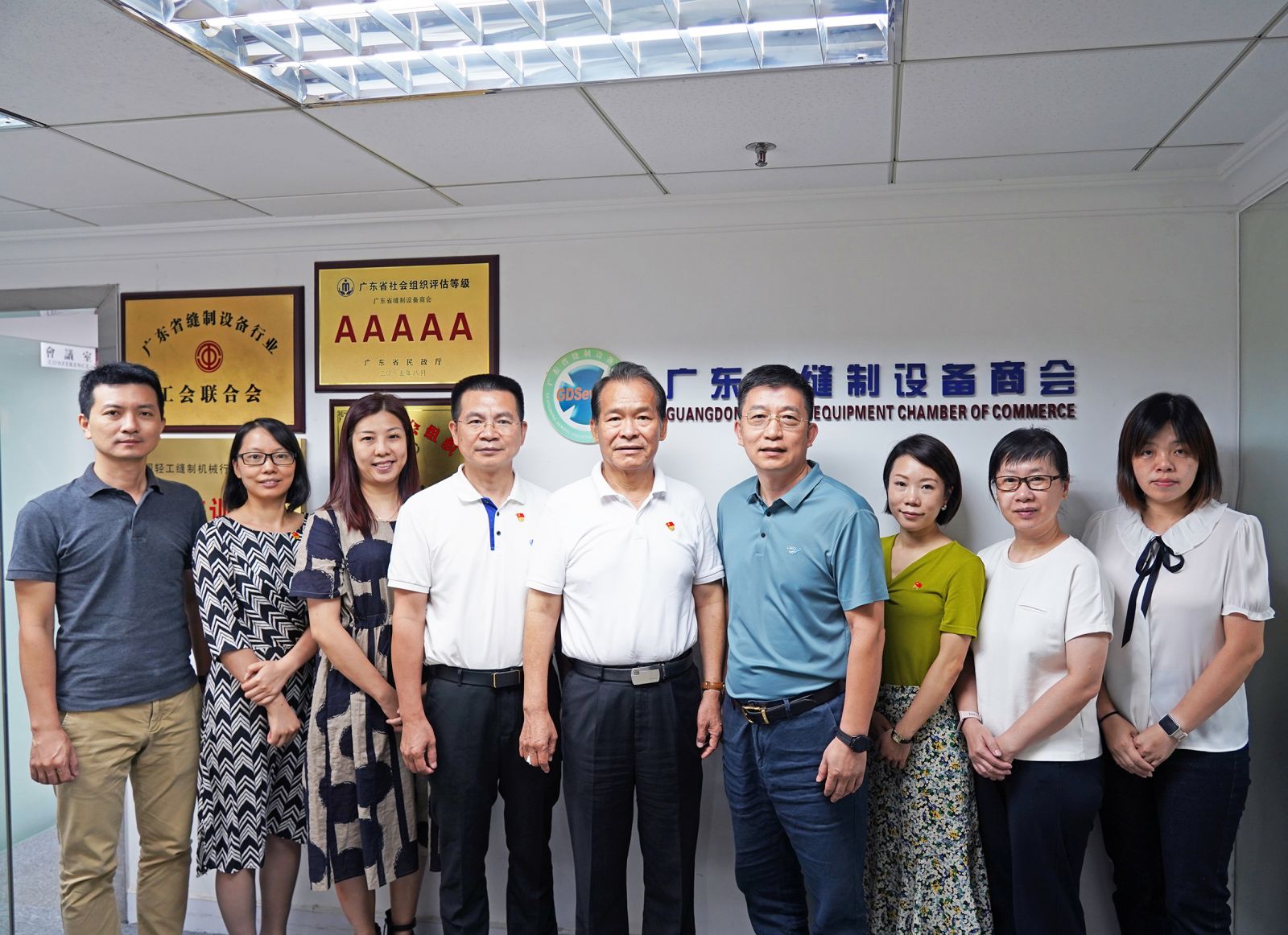 8月8日,廣東省社會組織005號黨建服務站站長、廣東省輕工行業聯合黨總支部書記、廣東省輕工業聯合會會長廖鳴衛,廣東省輕工綜合黨支部書記、聯合會副秘書長曾慶彪,黨建辦主任陳燕婷,辦公室主任陳艷芳,技能評價部副主任池喜山,秘書長助理龍潔勤等一行到訪商會秘書處。廣東省縫制設備商會常務副會長邵力世、副秘書長黃笑妍、外聯部主任溫志榮、信息部副主任譚秀芝、辦公室副主任王慧等熱情接待了廖會長一行。