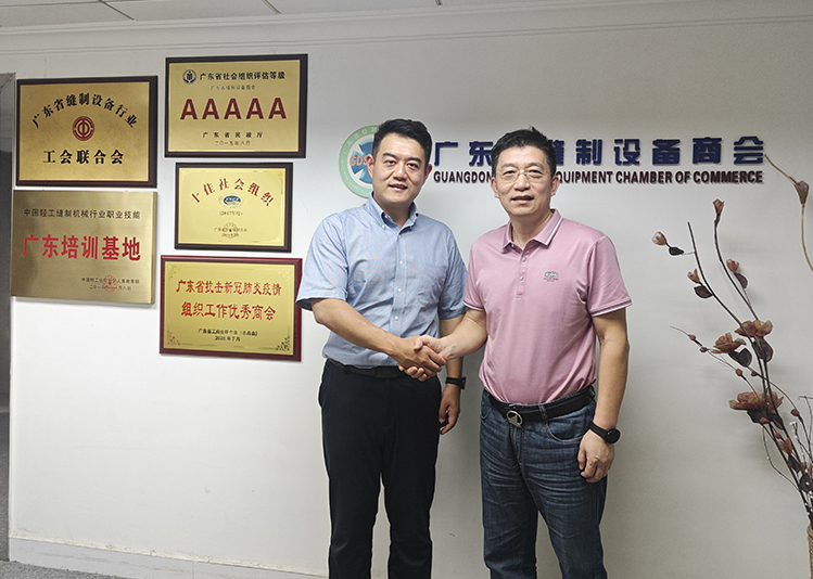 11月7日,中國國際貿易促進委員會紡織行業分會吳知真副主任到訪商會秘書處。商會常務副會長邵力世熱情接待了吳副主任,雙方就海內外紡織服裝及縫制設備機械專業展覽會的情況進行了深入溝通交流。
