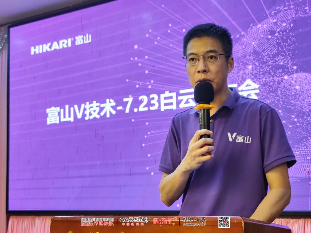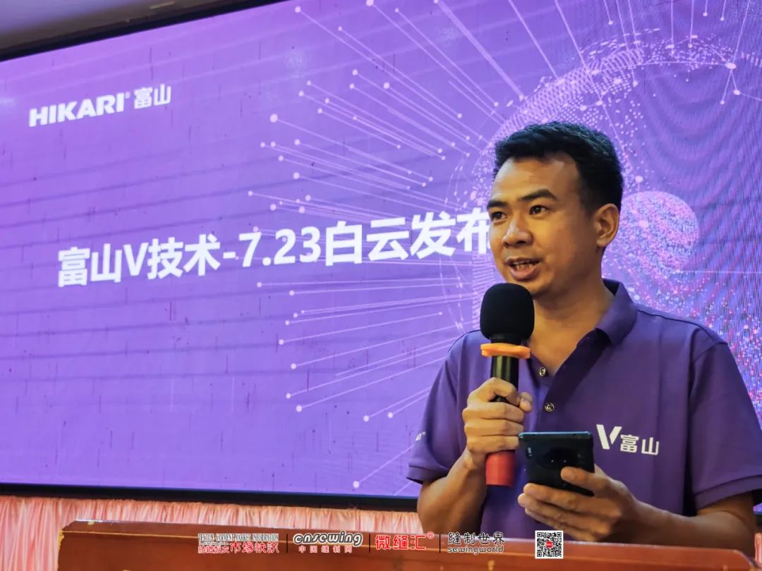 7月23日,富山V技術白云發布會在廣州盛大舉行。上海富山精密機械科技有限公司董事長吳良杰、銷售總監劉紅啟、大區經理顧駿、廣州豐帆公司總經理楊帆、廣州飛耀針車行姜總和胡總,以及周邊制衣企業負責人等共300多人出席了本次發布會。