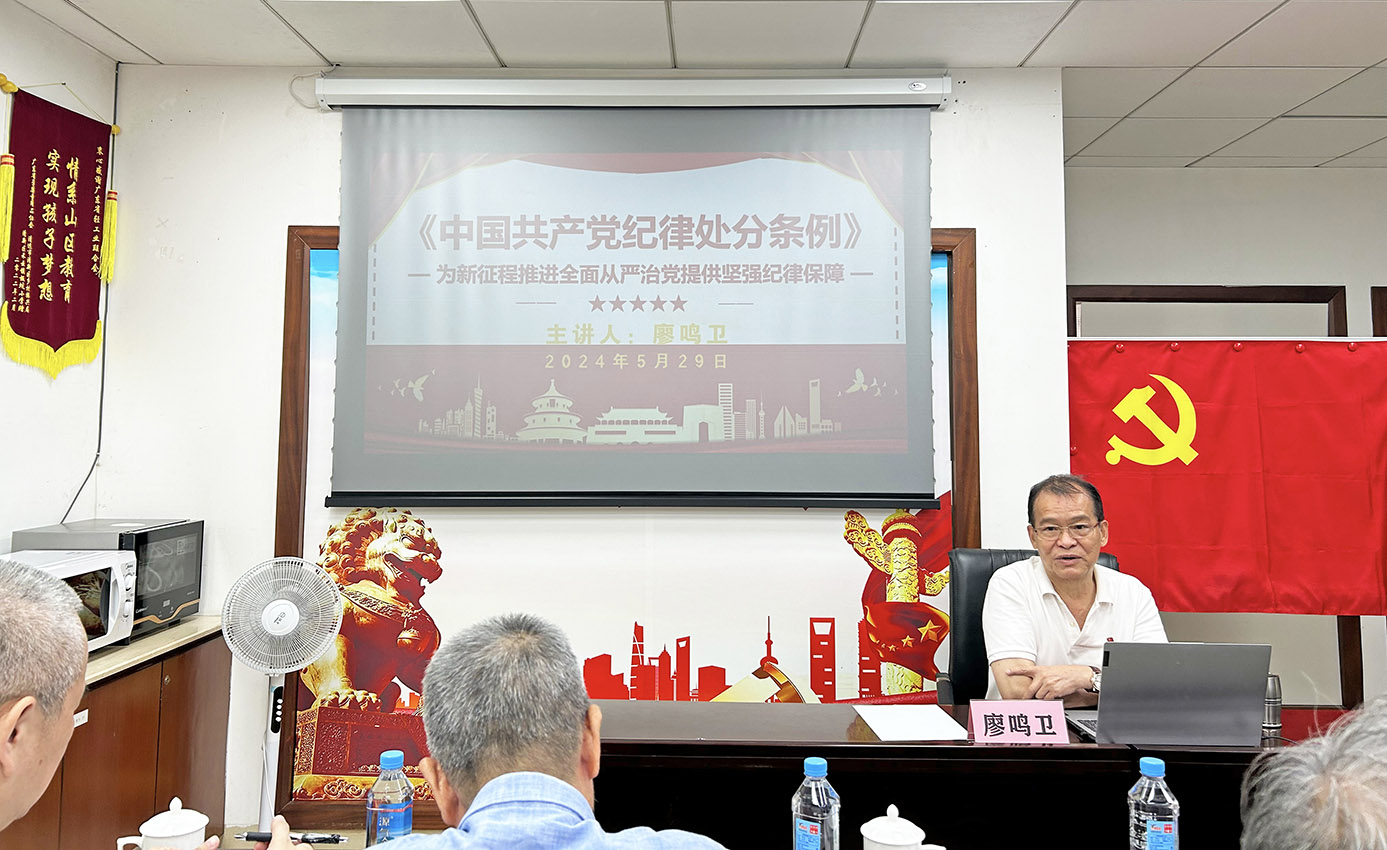 根據黨中央關于黨紀學習教育的指示精神以及上級黨委的部署要求,為持續深化省社會組織黨委005號黨群服務站成員的黨紀教育,5月29日上午,廣東省社會組織黨委005號黨群服務站長、廣東省輕工業聯合會黨總支部書記廖鳴衛以“《中國共產黨紀律處分條例》為新征程推進全面從嚴治黨提供堅強紀律保障”為主題,給全體黨員講授紀律黨課。廣東省縫制設備商會秘書處黨員譚秀芝、入黨積極分子溫志榮參加了本次黨課學習。