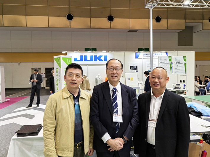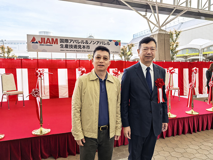 11月27-30日,日本國際服裝和非服裝制造技術貿易展(JIAM2024)在日本大阪舉行。為深入了解日本縫制設備行業市場空間和最新行業科研成果,廣東省縫制設備商會常務副會長邵力世、會員部主任梁啟明代表商會參展考察,同時宣傳推介商會主辦的2025大灣區暨華南國際縫制設備展覽會。