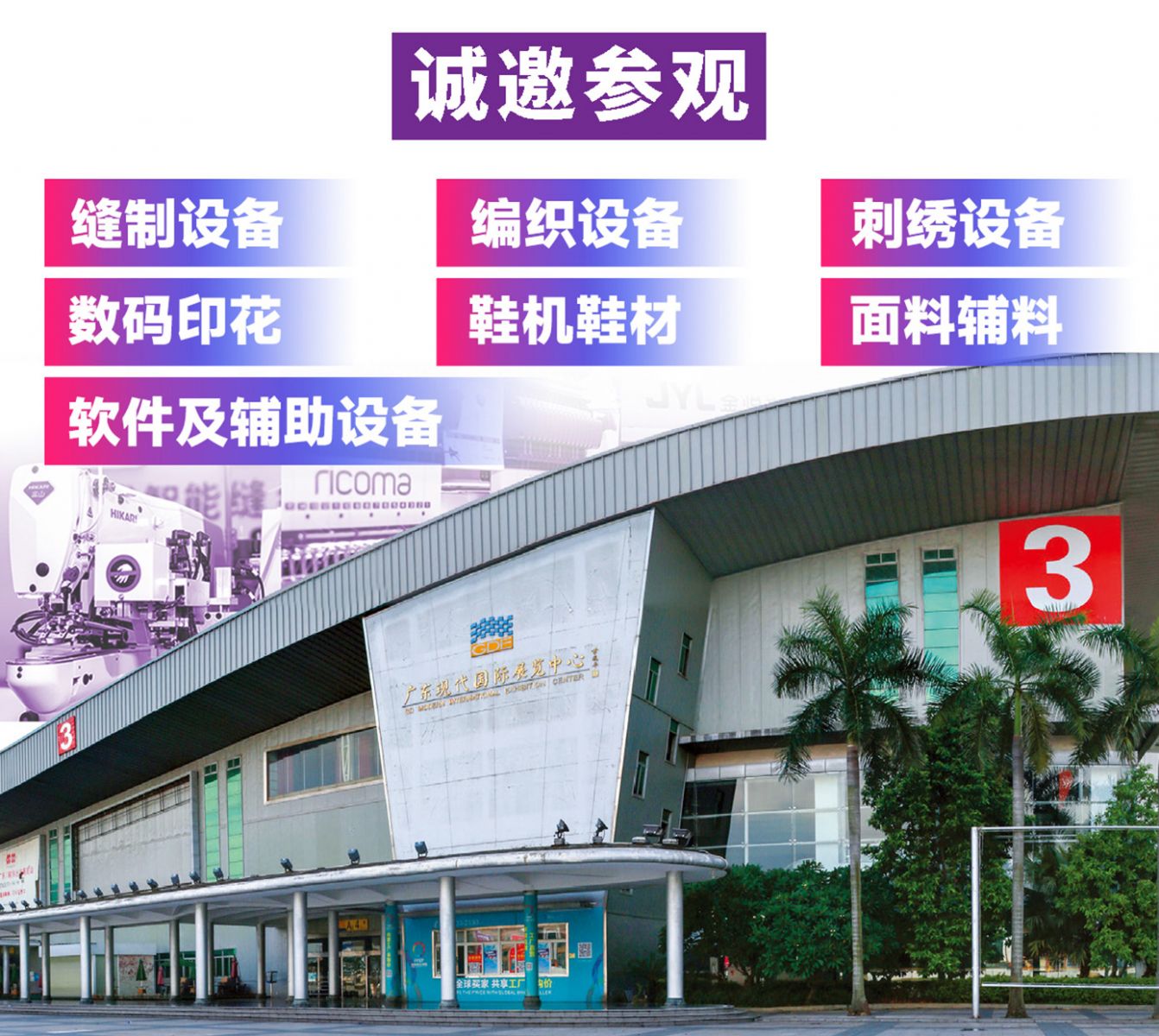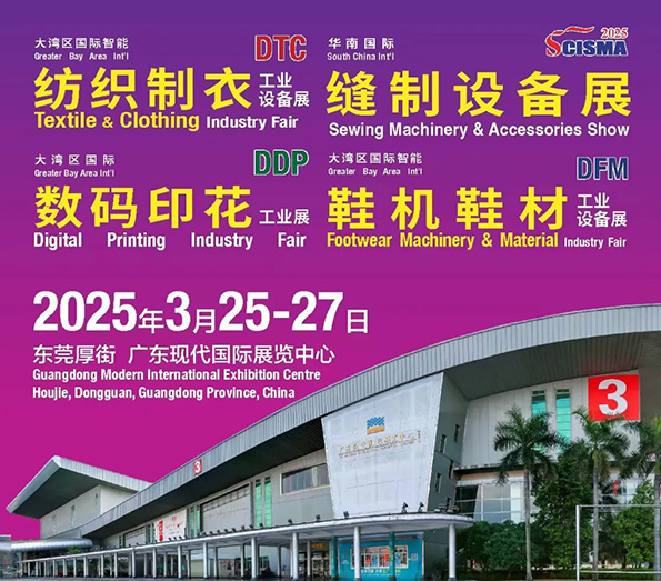 由廣東省縫制設備商會、訊通展覽公司、廣東省鞋機協會等多家單位聯合舉辦的2025大灣區國際智能紡織制衣工業設備展、華南國際縫制設備展、國際智能鞋機鞋材工業設備展、國際數碼印花工業展將于2025年3月25-27日在東莞厚街廣東現代國際展覽中心舉辦,歡迎產業鏈上下游行業同仁蒞臨參觀。