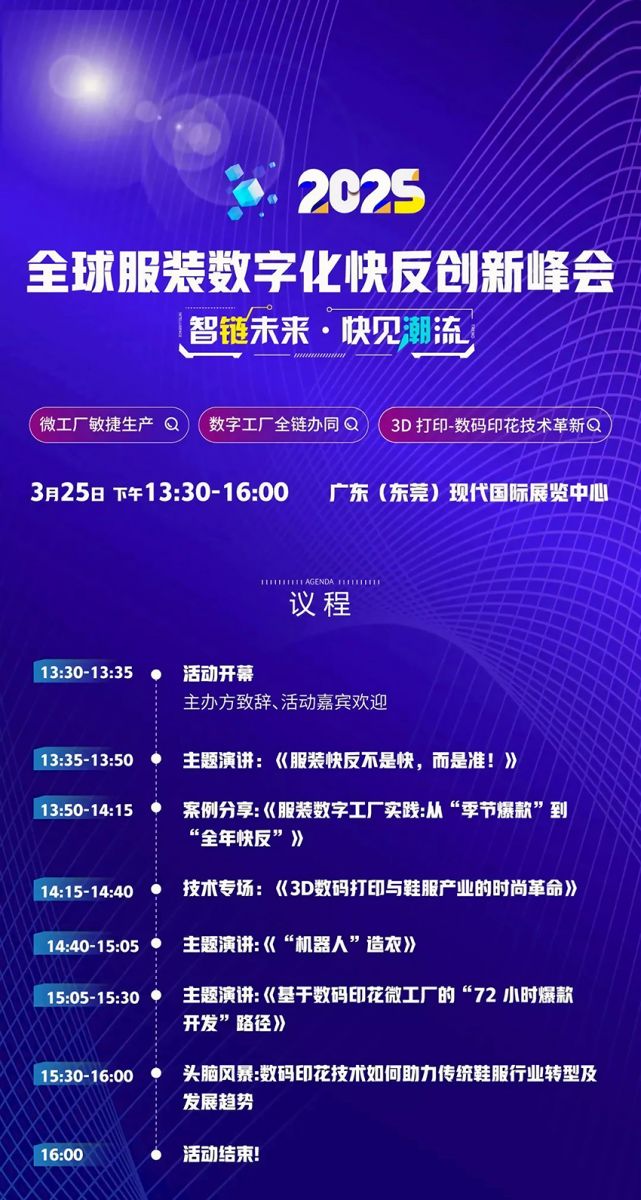 更多服裝數字快反、數碼印花、3D打印、功能性穿戴、倉儲降本等等熱點/痛點行業高端論壇敬請期待!現場更多精彩活動期待您的到來!