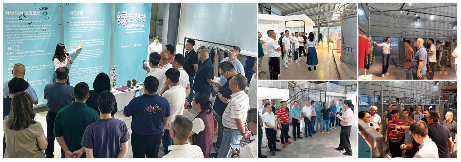 廣東溢維環境科技有限公司(簡稱“溢維環境”)是一家專注于制造業環境科技的知識型創新企業,為紡織服裝行業提供資源循環利用、水環境治理、設備節能改造等綠色生產科技,以及與可持續相關的綜合解決方案。在溢維環境,商會一行參觀了其湙可染™無水染色示范工廠。工作人員詳細講解了該技術的原理、產品應用表現以及與供應鏈上下游的合作模式。在湙可染™無水染色產品展廳,參觀代表進一步了解了該技術在服裝、襪子、家紡等各類紡織品上的廣泛應用。湙可染™無水染色技術不僅是溢維環境在環保領域的重大創新突破,更是對紡織服裝產業可持續發展的有力支撐。此外,商會一行還參加溢維環境的水環境技術研發中心,該中心總面積近1000平方米,設有7大專業實驗室,涵蓋膜制備、化學分析、膜性能測試、膜應用研究、水處理中試等幾乎全流程的研發場景。通過染色鹽回用、靛藍在線回用等前沿創新技術,讓印染廢水從“成本負擔”轉變為“價值源泉”,幫助紡織企業實現經濟效益與生態效益的雙贏。