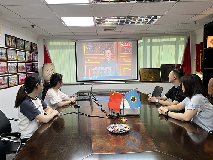 9時整,紀(jì)念大會正式開始。隨著國歌聲響起,全體起立,齊聲高唱國歌,表達對祖國的無限熱愛與崇高敬意。收看過程中,大家全神貫注,不時為閱兵儀式上展示的國家強大軍力和軍人颯爽英姿熱烈鼓掌。