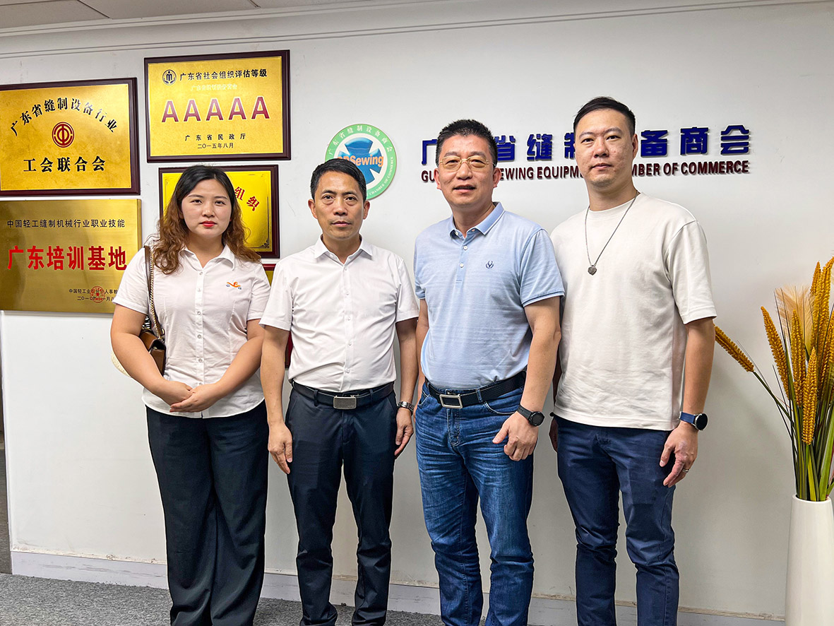 9月2日,商會新增補候選理事單位佛山市領縫縫紉設備有限公司總經理李俊一行專程到訪商會秘書處。商會常務副會長邵力世、外聯部主任溫志榮與李總一行座談交流。