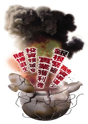 據了解,銀根緊縮、融資渠道單一、實業獲利漸微、投資領域收窄和賭博滋生這五大因素交錯釀成溫州民間借貸的瘋狂,更加劇民間借貸泡沫的破滅。