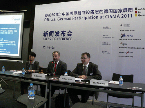 在2011年上海的CISMA展上,德國將在250平米的展出面積上全面展示德國技術(shù)。包括縫制設(shè)備,可編程控制與驅(qū)動,軟件方案,形體掃描,數(shù)控控制縫制裝置,多針縫制裝置,以及輔助設(shè)備等等。